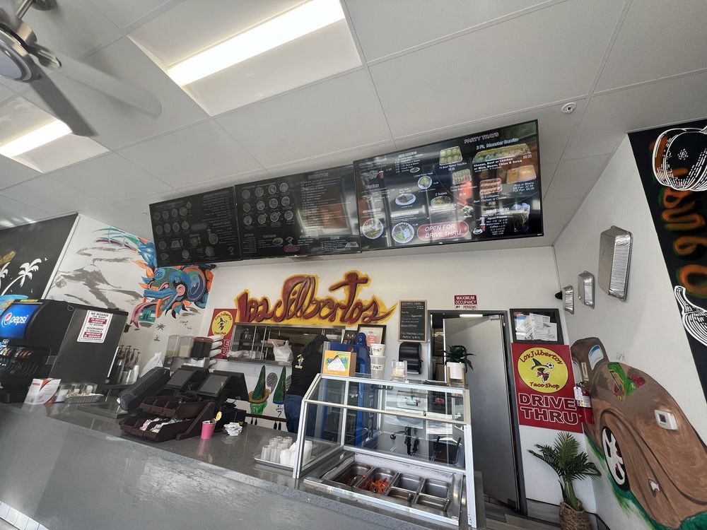 Los Jilbertos Taco Shop offers amenities such as Takeout, Delivery, Drive-Thru, Pets Welcome, Outdoor Dining, Accepts Contactless Payments, ensuring a comfortable and convenient experience for clients.